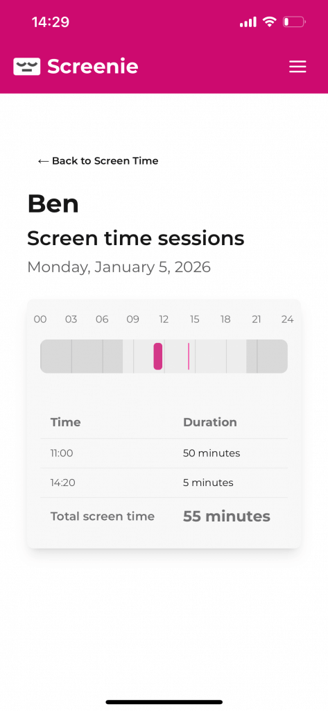 - Record screen time usage (sessions)