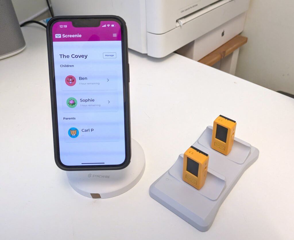 - The Web App – sign up for free at screenie.org to add your family and set up screen time allowances.
